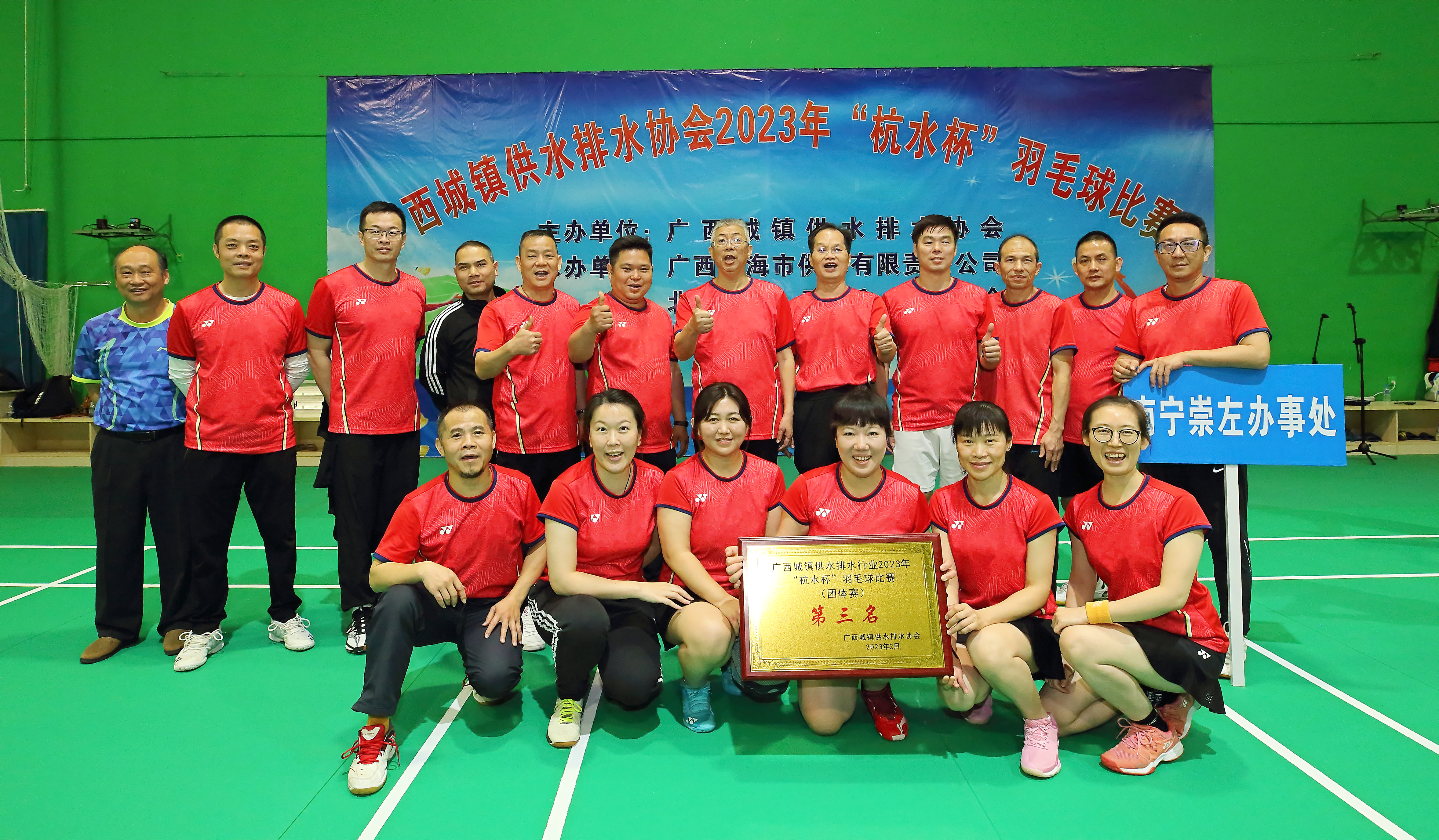 2月22日至24日,廣西城鎮(zhèn)供水排水協(xié)會(以下簡稱廣西“水協(xié)”)2023年“杭水杯”羽毛球比賽在北海市供水有限責任公司舉行,賽次分團體賽和領(lǐng)導(dǎo)組單項賽,經(jīng)過三天激烈的角逐,綠城水務(wù)公司13名隊員所在辦事處——南寧崇左辦事處最終取得了團體賽第三名的好成績。